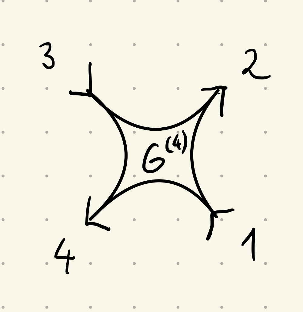 \end{align} G ~ 1234 ( 4 ) = ⟨ c 1 c ˉ 2 c 3 c ˉ 4 ⟩ , We can make contact with that convention by relabeling the indices in our definition of G ( 4 ) G^{(4)} G ( 4 ) as
