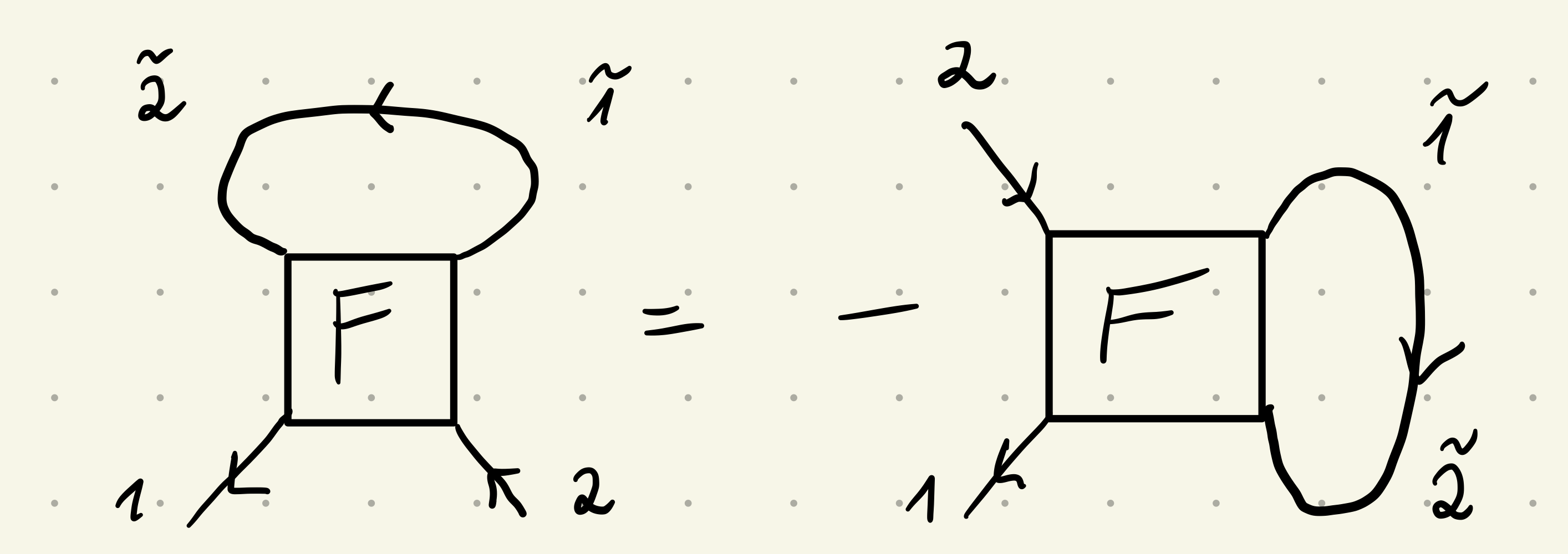 The decomposition of the full vertex into irreducible and reducible parts is powerful, because there exists a set of self-consistent equations for the reducible parts known as the Bethe-Salpeter equations (BSEs). In channel , the Bethe-Salpeter equation reads