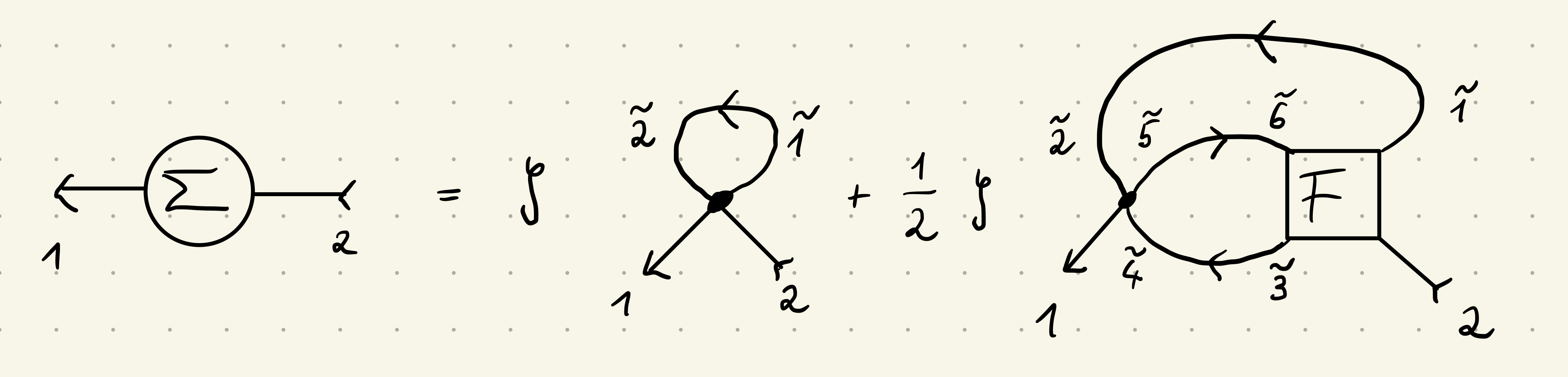 Additionally to the Bethe-Salpeter equations, there exists another exact relation connecting the full vertex to the self-energy , known as the Schwinger-Dyson equation (SDE). Such a relation is required to close the set of equations, since the self-energy is needed to compute the dressed propagators appearing in the bubbles of the Bethe-Salpeter equations.